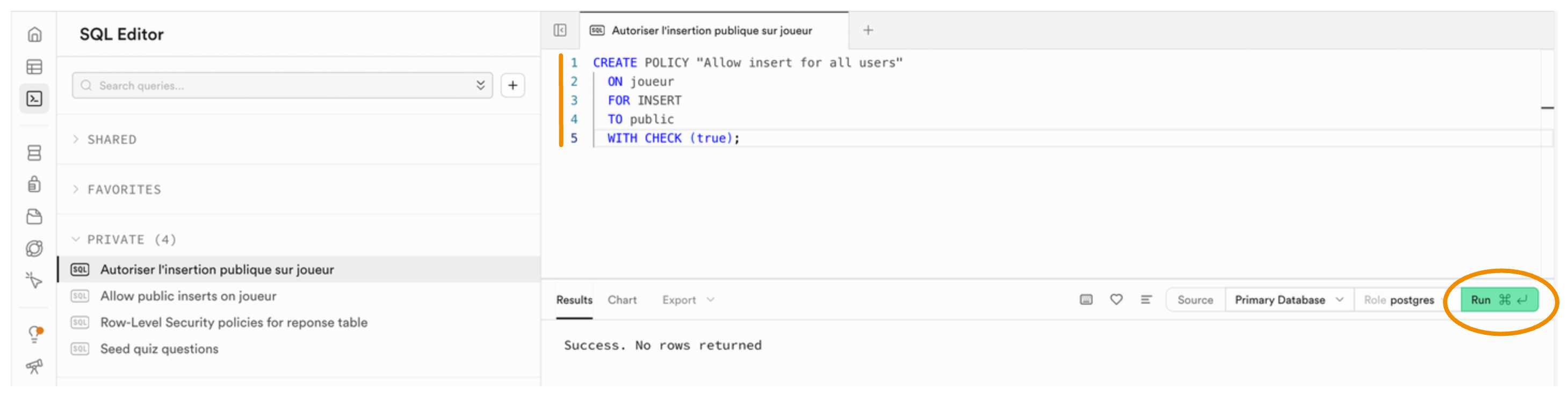 - Créer une RLS