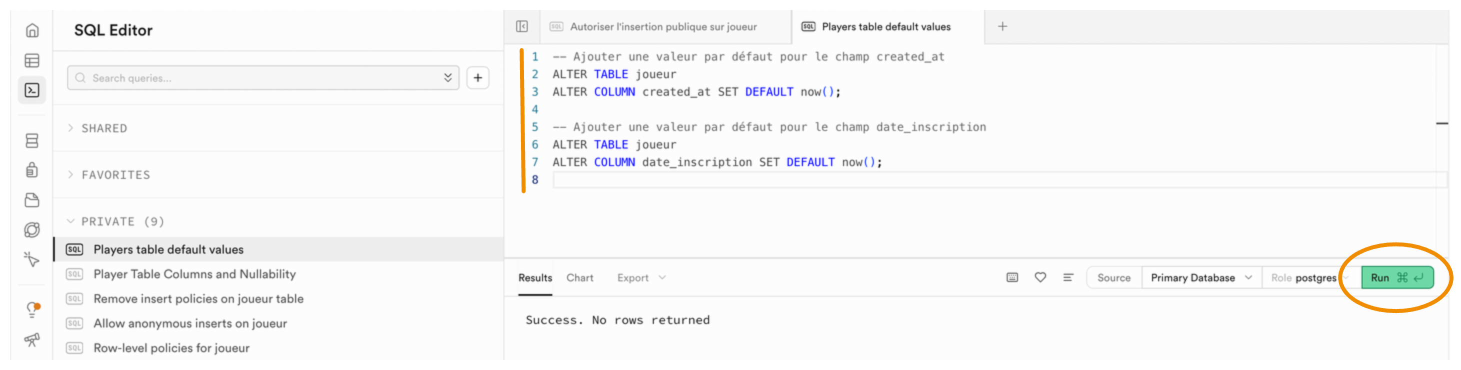 Table joueur dans Supabase