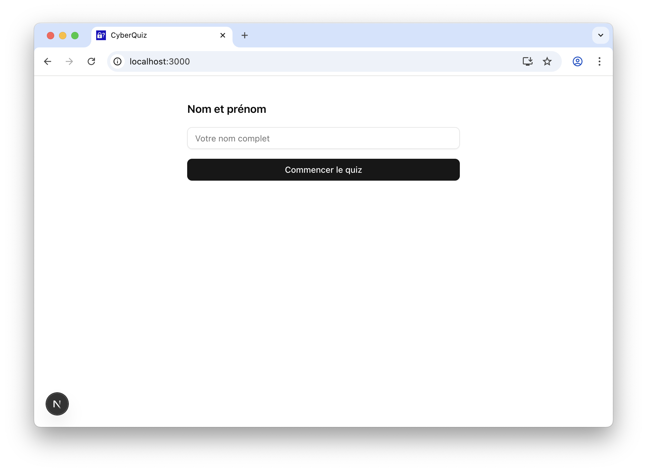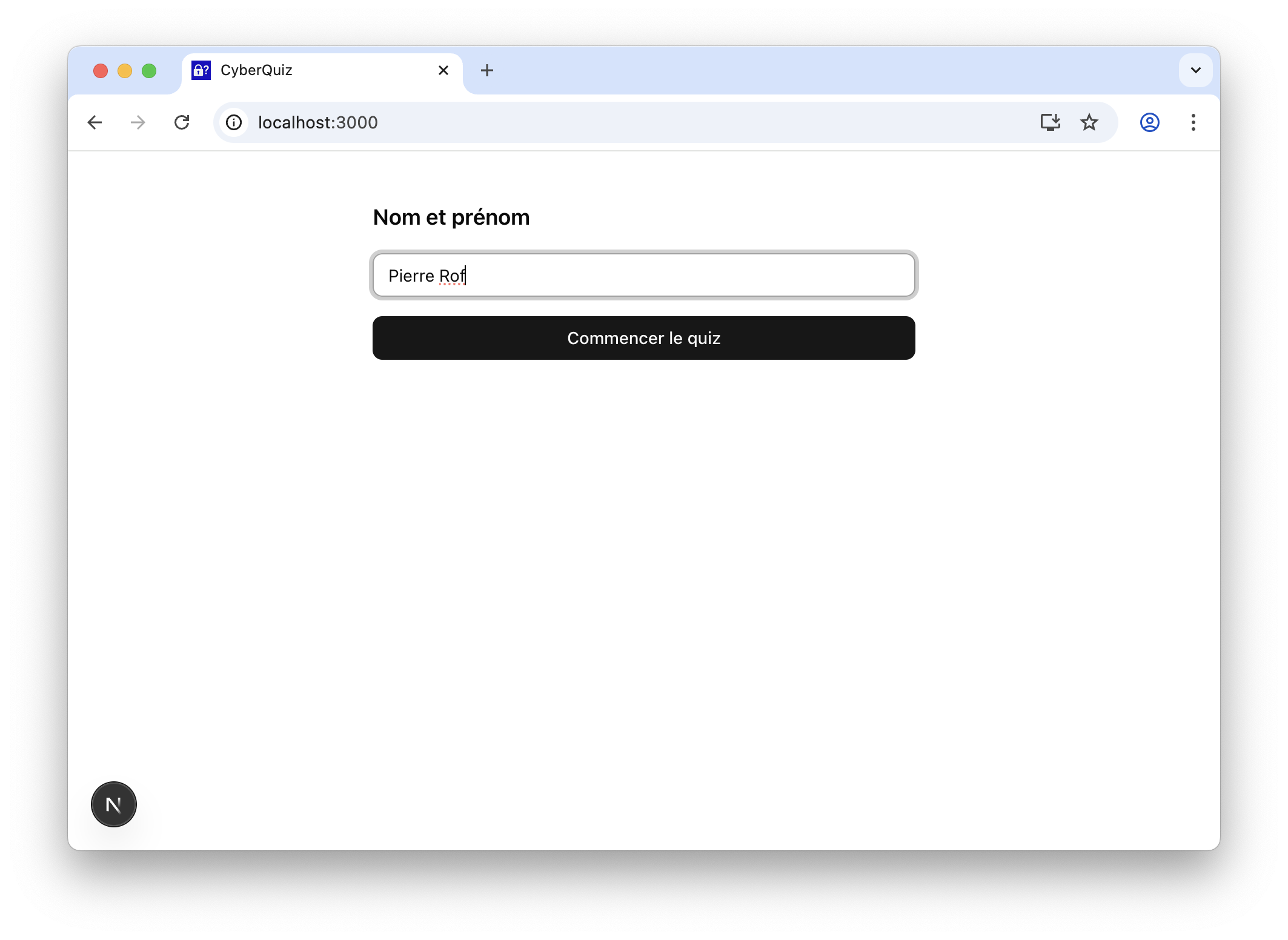 Nom et prénomobligatoire - Ajouter un bouton Commencer le quiz