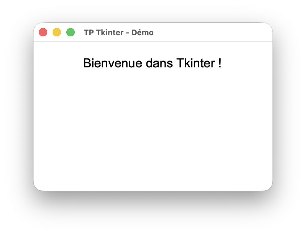 6. Ajouter une étiquette (Label) avec le texte "Bienvenue dans Tkinter !"