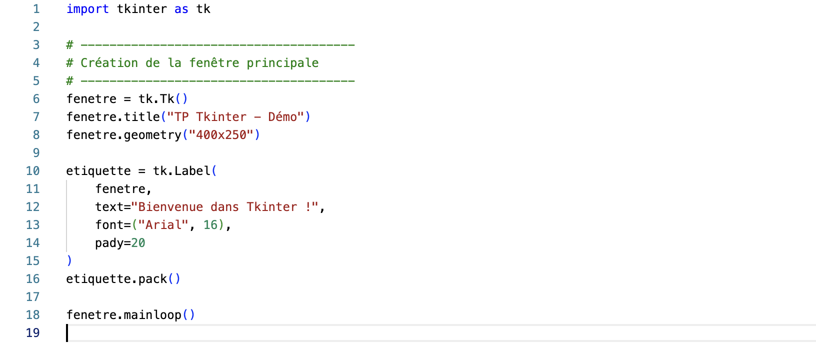mainloop) indispensable pour que la fenêtre reste ouverte.
