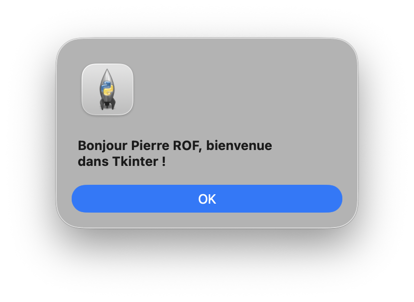 tk.messagebox.showinfo("Bienvenue", f"Bonjour {prenom}, bienvenue dans Tkinter !")
